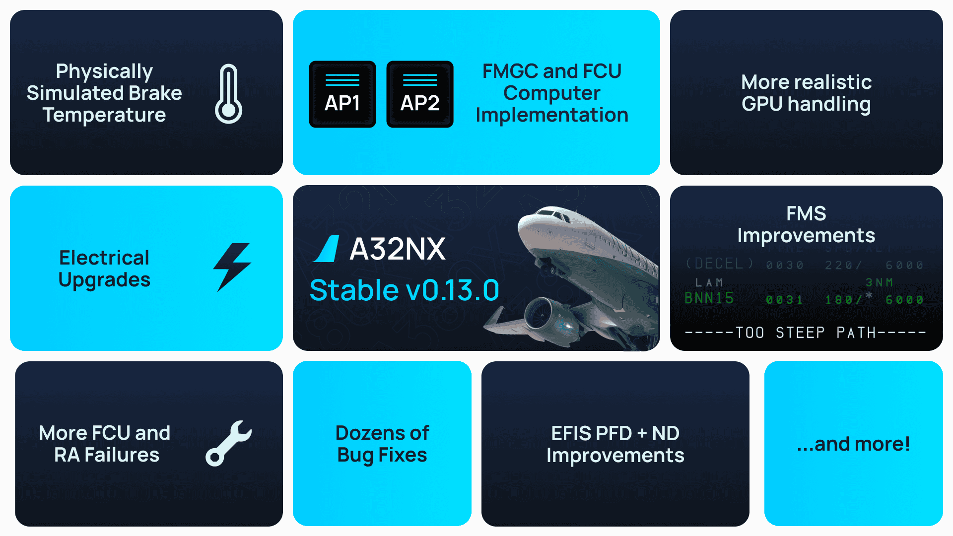 We are excited to introduce our latest A32NX release, a comprehensive update to various long-standing features including a host of new features and improvements across the aircraft systems, flight deck, and flight planning tools.